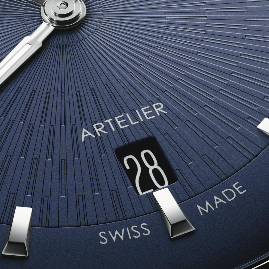 • Dark blue dial with applied indices